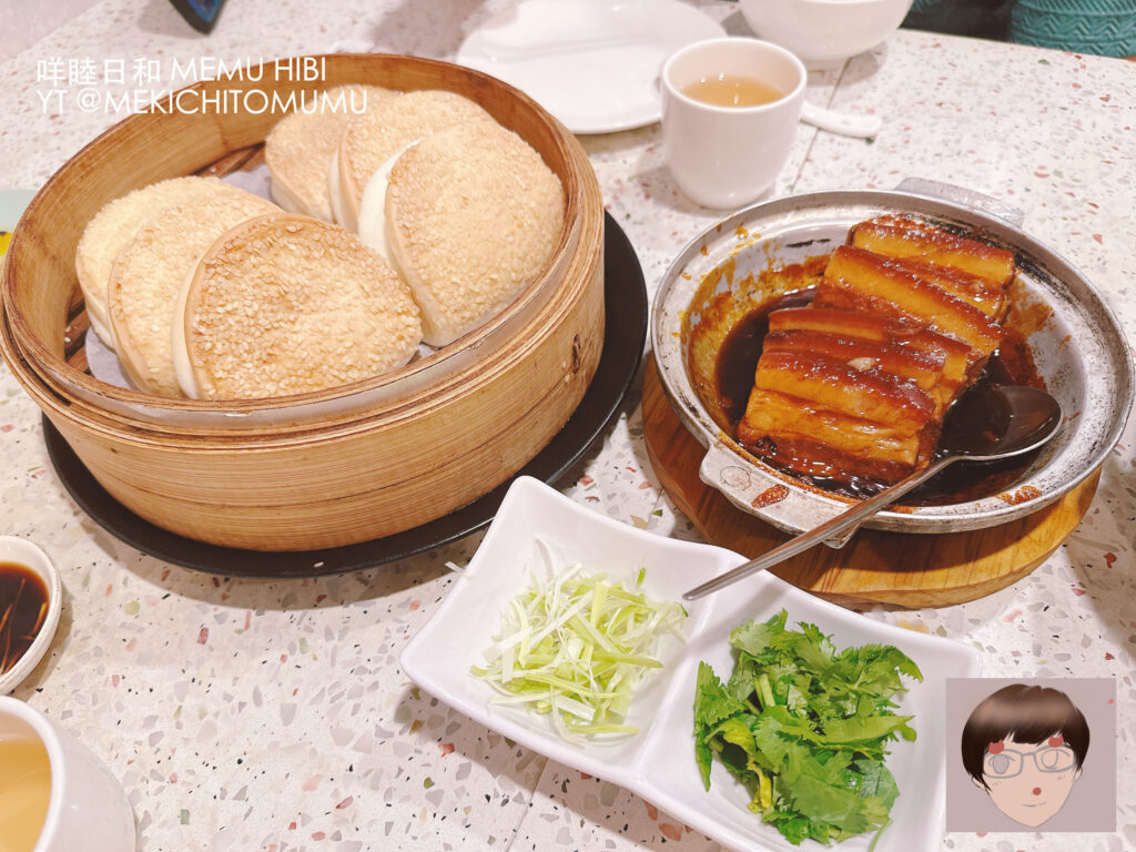 - 招牌東坡肉 這道號稱「台北最好吃的東坡肉之一」果然名不虛傳。一份六片,份量抓得剛好。最特別的是它的刈包,加入了芝麻並經過烤製,口感酥脆且帶有香氣;夾入東坡肉後,搭配蔥白與香菜一同入口,肉質肥而不膩、入口即化,即便吃完一整份也不覺得油負擔重。